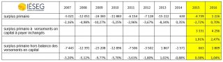 - surplus primaire hors balance des versements en capital = surplus primaire – (Versements en capital d’autres secteurs à recevoir- Versements en capital à d’autres secteurs, à payer)