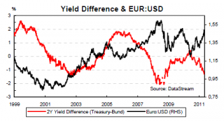 THE INTEREST RATE DIFFERENTIAL IS STILL SUPPORTING THE EURO AGAINST THE DOLLAR.